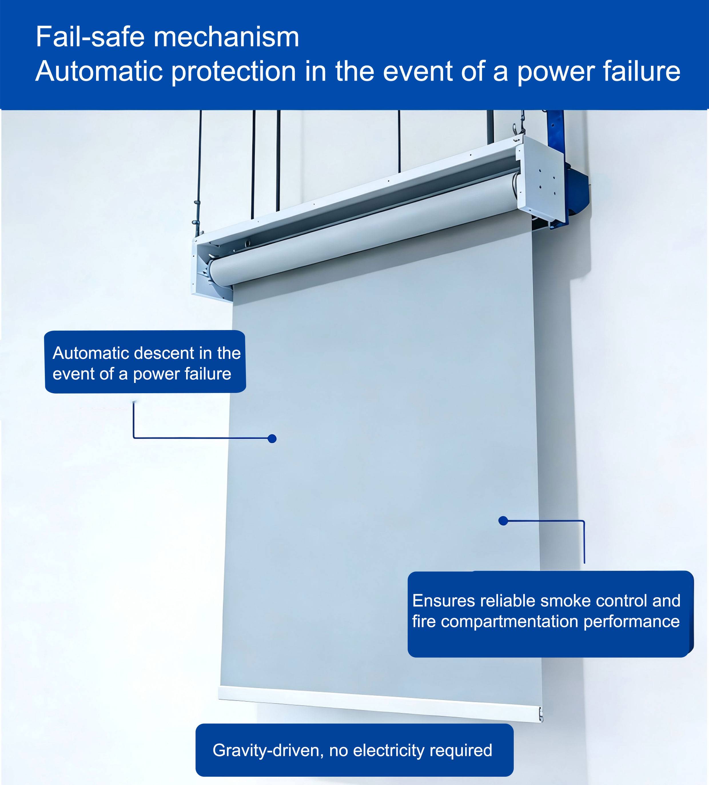 Designed with a fail-safe mechanism for emergency situationsAutomatically descends by gravity in the event of power failureEnsures reliable operation even when all power is lostEnsures effective smoke containment and reliable fire separationperformance.Adds an extra layer of safety for building occupants