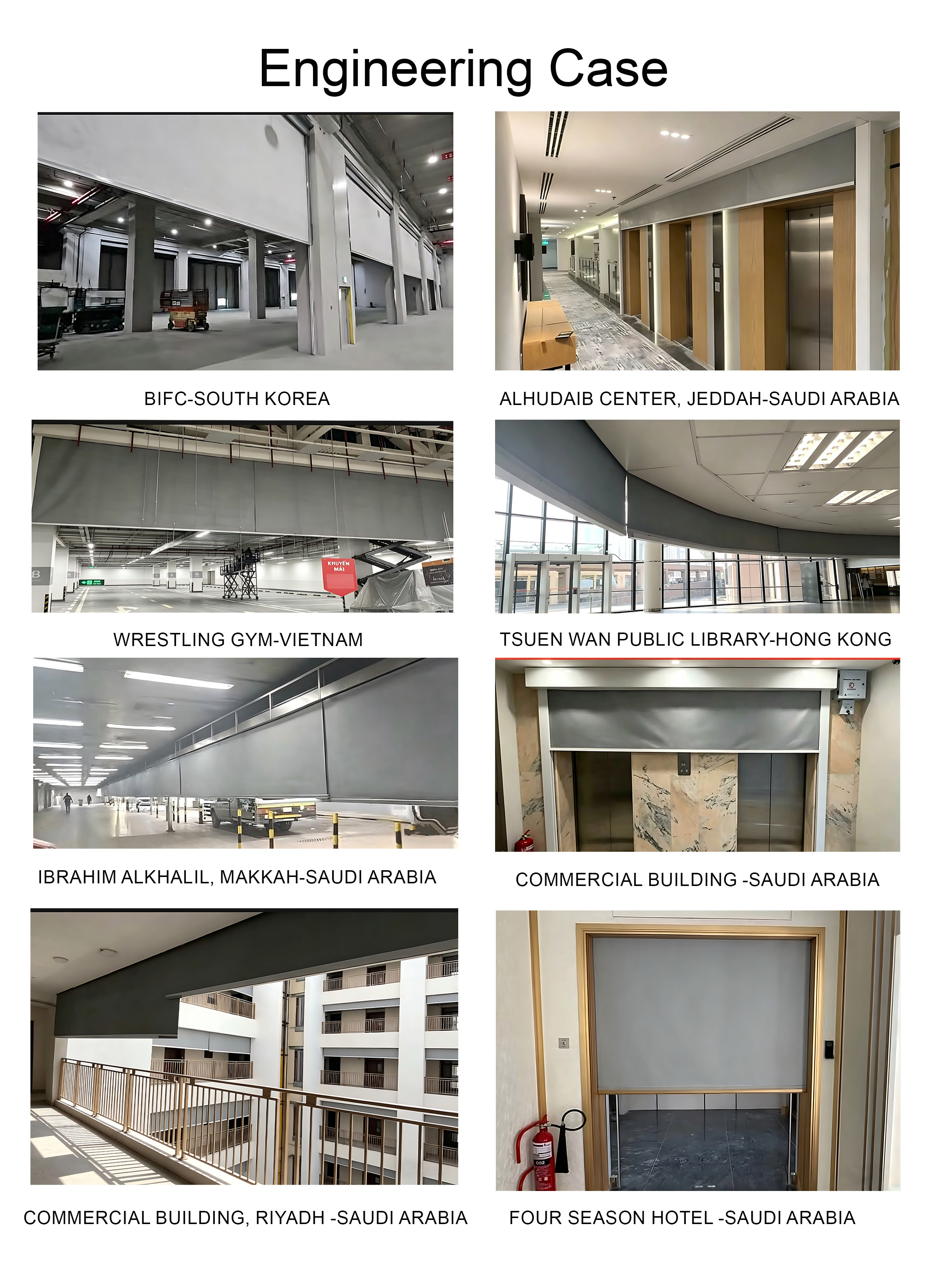 In modern high-rise buildings, elevator shafts serve as essential vertical transportation channelsTo address this life-threatening challenge, advanced elevator fire curtain systems have been developedto seal off elevator openings at each floor level, preventing the uncontrolled migration of smoke throughthe shaft. These systems are engineered as an integral part of a building's passive fire protection strategy,ensuring that escape routes remain tenable and safe during emergencies.